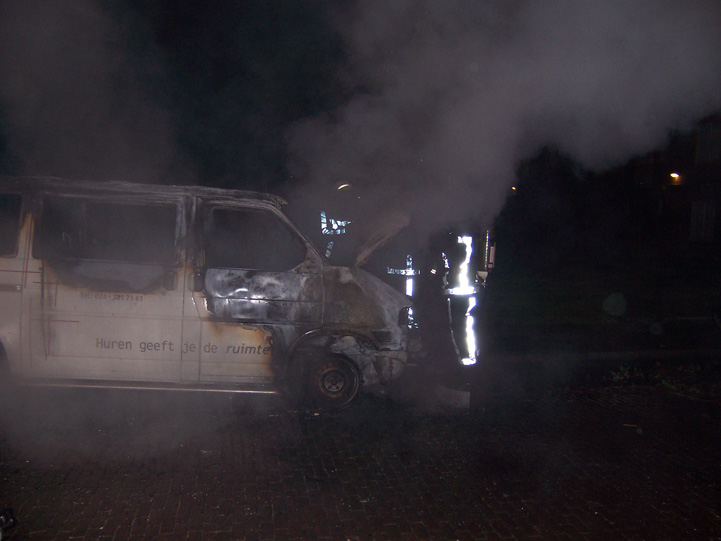 ARNHEM - In de nacht van 22 op 23 augustus zijn even na 4.00u diverse auto's in brand gestoken. Dit gebeurde in de wijk Presikhaaf. De dader of daders zijn vanaf de Waalstraat via de Geleenstraat naar de Laan van Presikhaaf getrokken. In de Waalstraat staken zij een kleine vrachtwagen in brand. Deze brandde bijna volledig uit. In de Geleenstraat werden twee bestelbusjes in brand gestoken. Het eerste bestelbusje brandde volledig uit, bij een tweede bestelbusje kon de schade beperkt worden tot de voorkant. Een tussen de twee voertuigen geparkeerde auto liep schade op aan de achterzijde door de warmte.
