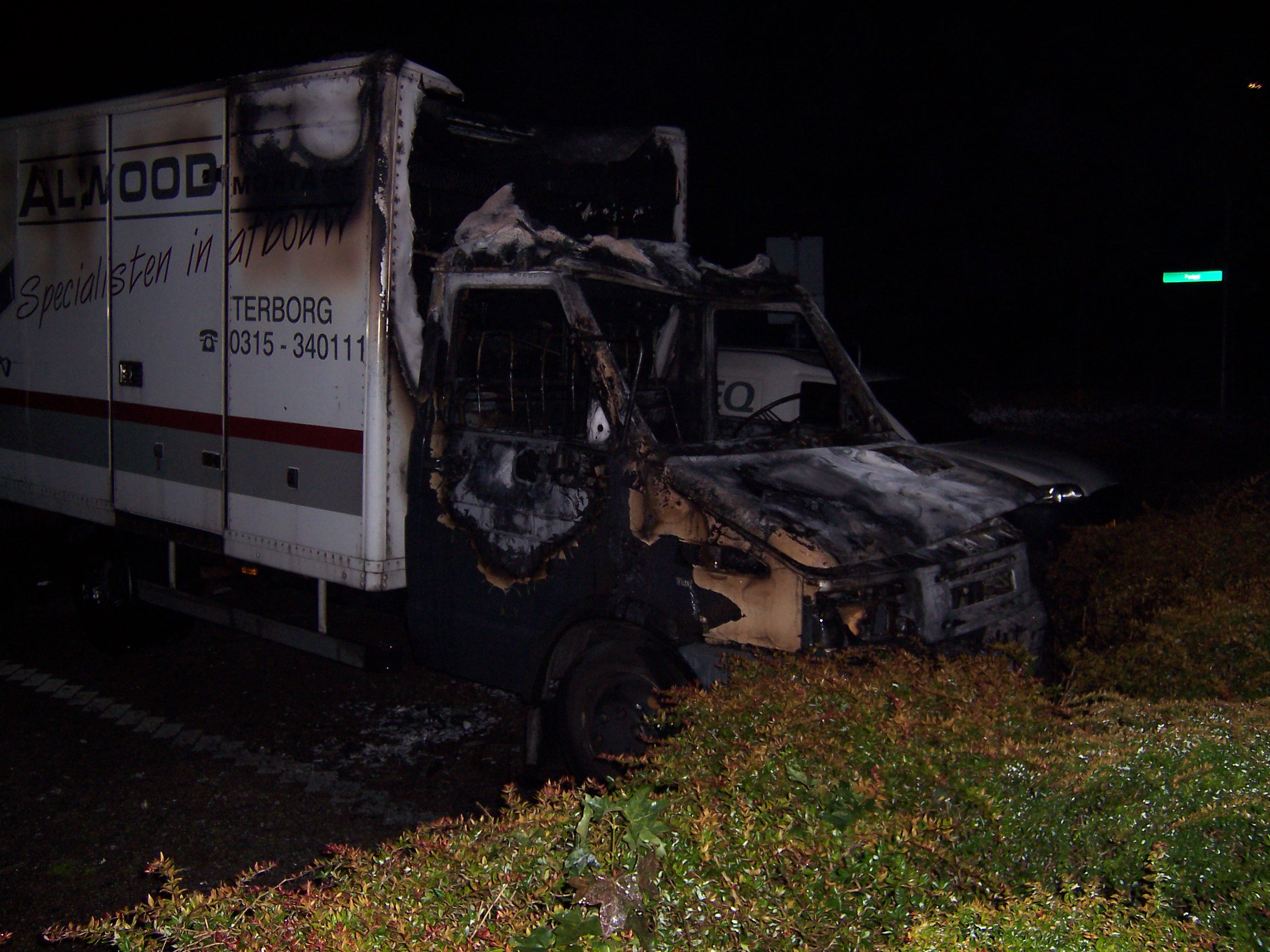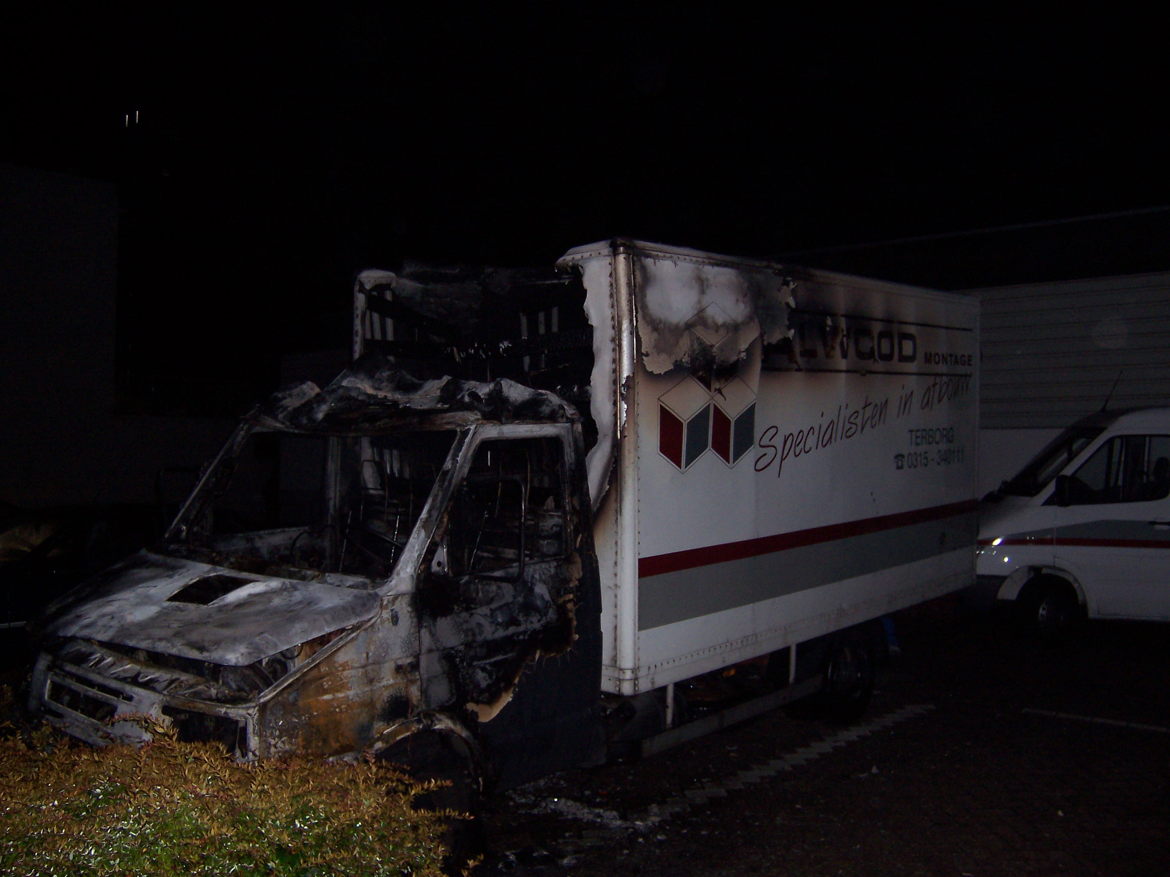 Waalstraat. De cabine van de kleine vrachtwagen is volledig uitgebrand.